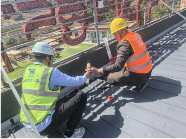 中建六局黄南州新时代高级中学项目在与尖扎县教育局对接工作中得知这一情况后,立即协调技术骨干与施工物资,到学校开展屋顶彩钢房修复及楼顶防水修缮义务服务,用专业力量为乡村师生筑牢安全防护网。